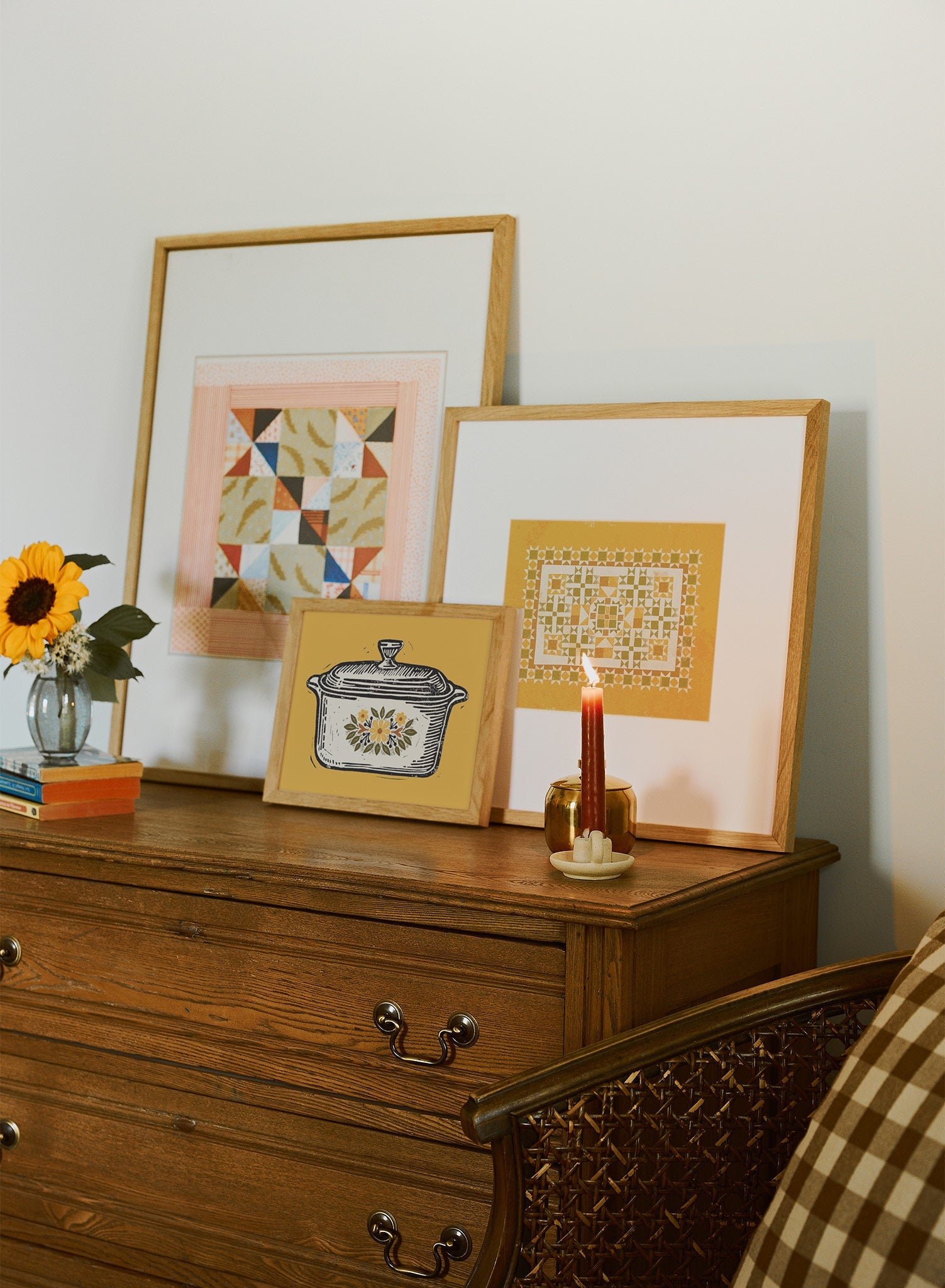 Perfect for a kitchen or dining area, this print pairs beautifully with rustic wooden accents or retro-inspired decor. It can also add a cozy touch to a gallery wall, blending seamlessly with other vintage or folk art pieces. Consider placing it near open shelving or a cozy breakfast nook to evoke a sense of warmth and hospitality.