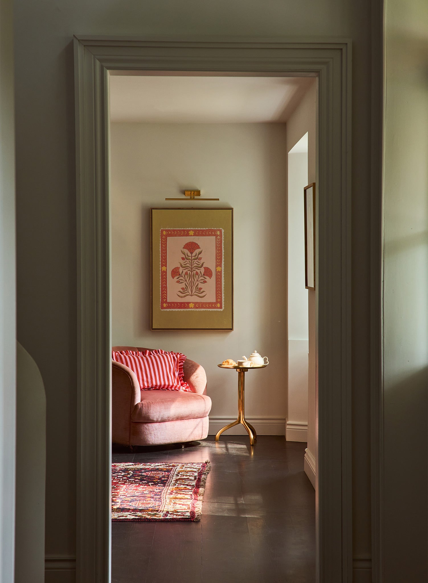 Perfect for a cozy reading nook or a welcoming entryway, this print pairs beautifully with natural wood furnishings and soft textiles. It can also serve as a focal point in a gallery wall, surrounded by other folk-inspired artworks or vintage pieces. Consider placing it in a space with plenty of natural light to highlight its rich colors and intricate details, creating an inviting atmosphere.